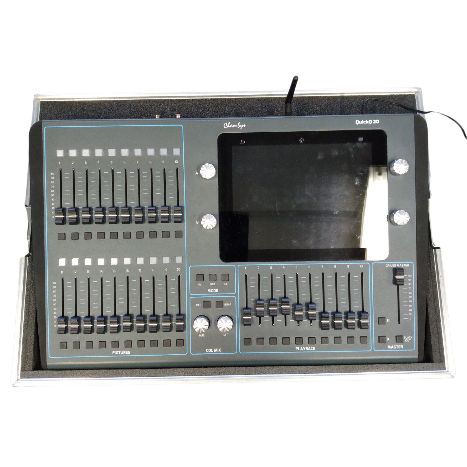 Elle fait partie de la gamme QuickQ de ChamSys, pensée pour le contrôle de dimmers, de LED (mélange de couleurs) et de projecteurs asservis.